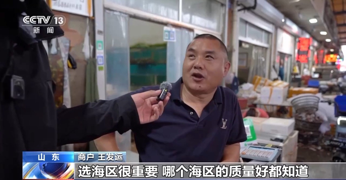 商户 王发运:你得知道海区,选海区很重要,哪个海区的质量好得都知道。我的货直供到全国各地,得保证品质,价钱要合理,品质很重要。
