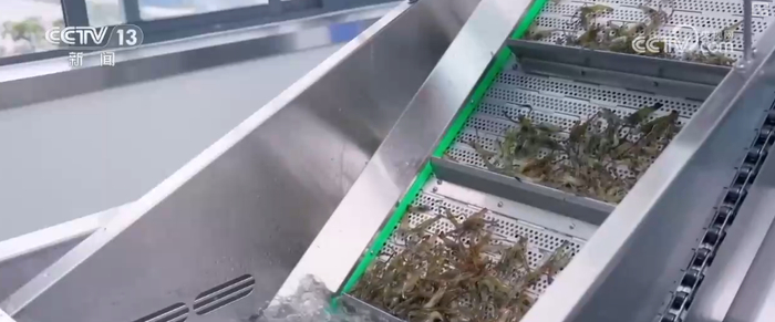 青虾是一种“娇贵”的水产,出水后仅能存活1到2小时,销售半径严重受限。如今,数字化技术不仅大大增加了产量提升了品质,更打通产业链堵点。冷链物流仓储配送中心的青虾生产线,一小时就能完成2000斤青虾的筛选分级、清洗、加工、包装及速冻锁鲜。