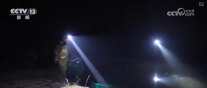 凌晨4时滁河里的鱼塘,江苏浦口虾农康光辉带着两位师傅开始了一天的劳作。他们借助头灯的亮光,拉起沉甸甸的虾笼逐个打捞。岸上收虾商户也已早早赶来。